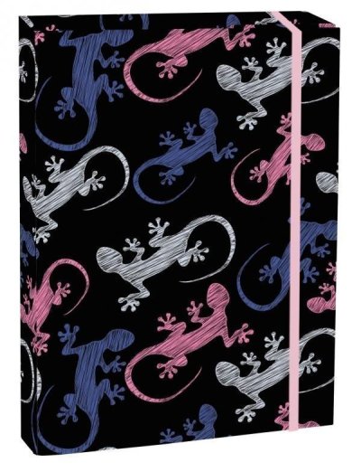 Laminované boxy na sešity jsou opatřeny vnitřními klopami, díky kterým dokumenty nevypadnou a pevné gumičky je udrží zavřené.Desky jsou k dispozici ve formátech A4 a A5, aby všechny sešity a školní dokumenty zůstaly pěkně rovné.
