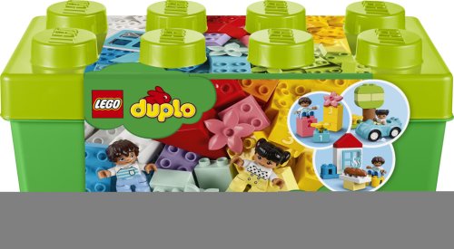 Vzdělávací hračka pro batolata! Pevný úložný box ukrývá auto s pohyblivými koly, střechu, okno, květinu, chleba, DUPLO figurky, kostky s čísly 1, 2 a 3, a k tomu navíc spoustu originálních kostek v zajímavých barvách. Zatímco děti budou spojovat kostky a dílky do nespočtu nápaditých her a modelů, rodiče s nimi mohou sdílet radost a jejich důležité vývojové milníky.