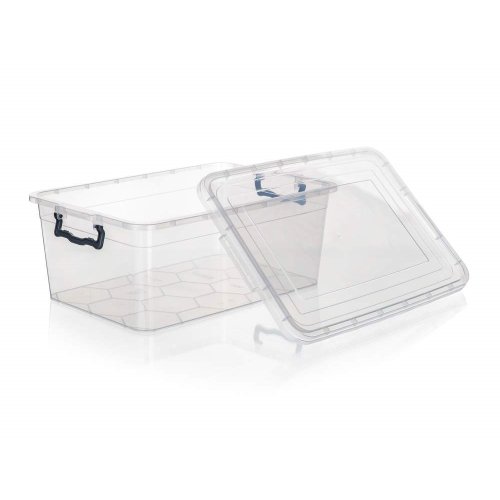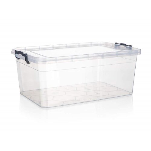 objem: 20 l rozměry: 49 x 32,5 x 19,5 cm materiál: plast barva: transparentní box, šedé klipy