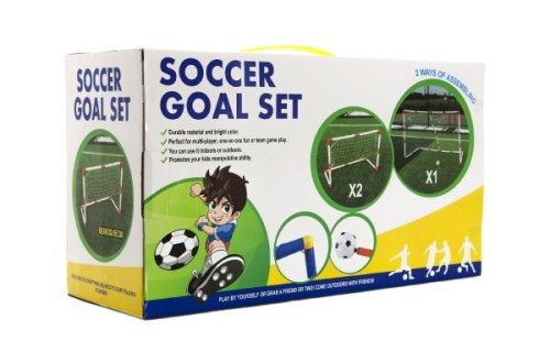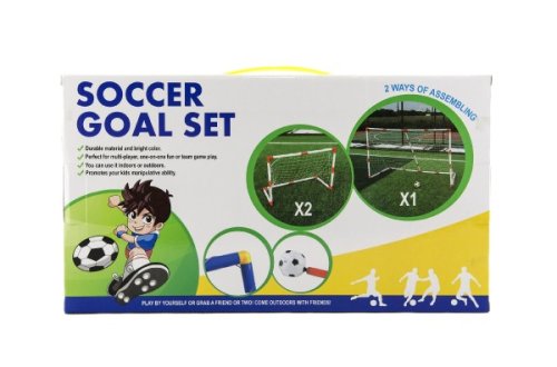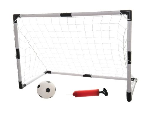 Sportovní sada na fotbal pro všechny malé fotbalisty! Spousta zábavy na zahradu. Postav branku, natáhni síť, nafoukej míč a zápas může začít. Je možné sestavit 1 velkou branku nebo 2 branky menší,v balení jsou 3 sítě. Velikosti branek: Menší – 88x60x45cm Větší - 180x115x85cm Rozměry balení 43 x 24 x 16 cm. Vhodné pro děti od 3 let.