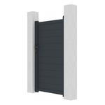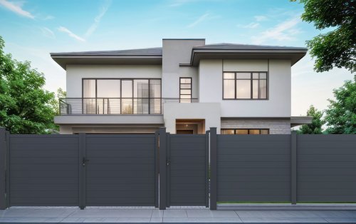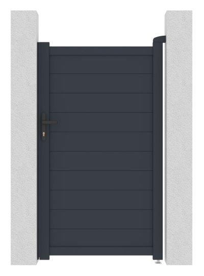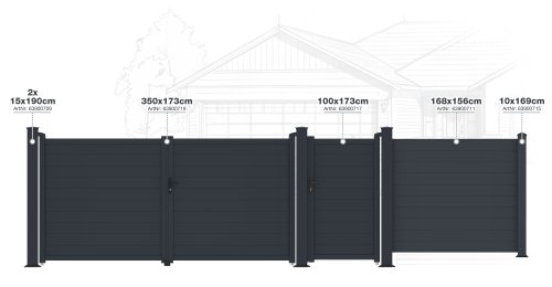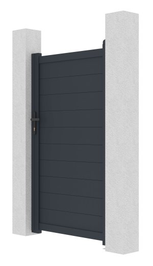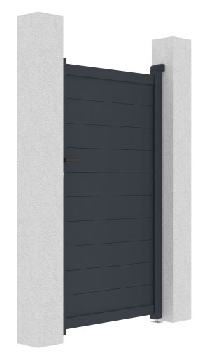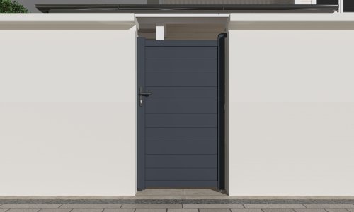Výplň s horizontálně uloženými lamelami v atraktivním grafitovém provedení kombinuje dostatek soukromí s moderním designem, takže branka s otevíráním dovnitř bude slušet každému typu oplocené stavby.