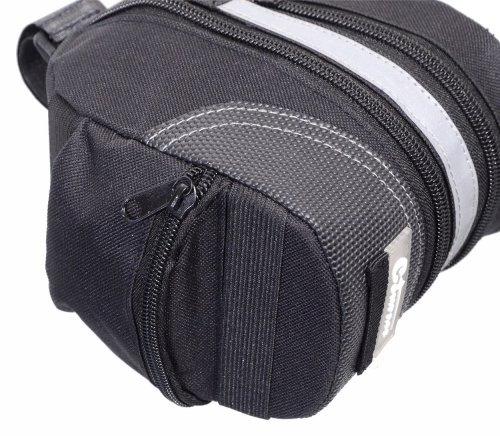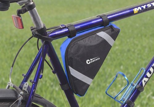 Kompaktní cyklistická brašna Compass Bike 12024 slouží pro uchycení pod horní rámovou trubku pomocí pevných pásků se suchým zipem a představuje skvělé řešení na krátké výlety a vyjížďky po městě i do přírody. Nabízí 1,5l vnitřní prostor s uzavíráním na zip, který pojme fotoaparát, mobilní telefon, peněženku, nářadí či další potřeby všeho druhu. Taška je vyrobena z vodoodpudivé textilie, proto bude veškerý obsah spolehlivě chráněn vůči dešti a dalším rozmarům počasí. Reflexní prvky zase zajistí zvýšenou viditelnost ve dne v noci, aby se vám na vaší cestě nepřihodilo nic zlého. Brašna má černo-modrý design, který bude dobře ladit s téměř každým jízdním kolem