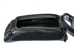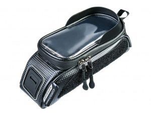 Brašna na horní rámovou trubku s kapsou pro mobil z moderního materiálu CarbonDesign. Praktická objemná brašna na veškeré nezbytnosti, které je třeba mít stále na očích (mobilní telefon, kompaktní fotoaparát, peněženka, klíče, sušenka).