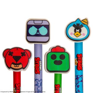 Produkt je součástí širší kolekce Brawl Stars, kde jsou k dispozici i další tužky s gumami znázorňujícími různé postavy z hry, například Shelly, Spike nebo Crow. Tyto tužky mají různé barevné provedení, které odpovídá charakteristickým barvám jednotlivých postav, což umožňuje fanouškům si vybrat oblíbenou postavu. Všechny tužky jsou opatřeny stejným typem loga a grafických prvků, které sjednocují celou kolekci a dodávají jí profesionální a tematický vzhled.