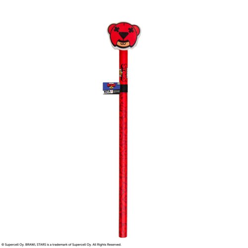 Brawl Stars tužka s gumou Nita je stylovým psacím nástrojem určeným především fanouškům populární hry Brawl Stars. Tato tužka je vyrobena v jasné červené barvě, která je doplněna o drobné grafické prvky a logo Brawl Stars umístěné pod gumou. Na vrcholu tužky je připevněna guma ve tvaru hlavy medvěda, což je charakteristický symbol postavy Nita z této hry. Guma má výrazný design s černými detaily, které zvyšují její vizuální atraktivitu a zároveň ji odlišují od běžných školních potřeb.
