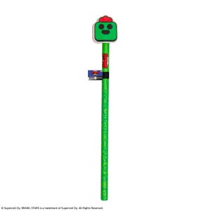 Brawl Stars tužka s gumou Spike je stylový psací nástroj určený především pro fanoušky populární hry Brawl Stars. Tužka je zhotovena v zářivě zelené barvě, která odkazuje na postavu Spike, jednoho z oblíbených hrdinů hry. Povrch tužky je zdoben drobnými grafickými motivy souvisejícími s herním světem Brawl Stars, což jí dodává hravý a barevný vzhled. Na těle tužky je navíc natištěno červené logo Brawl Stars, které podtrhuje její oficiální licencovaný charakter.