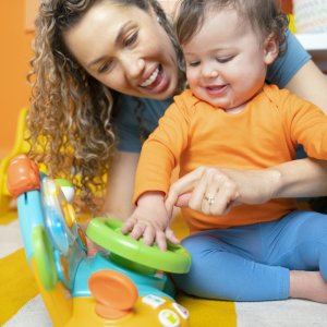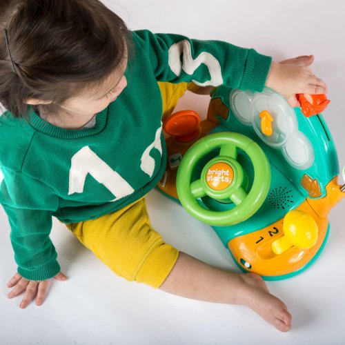 Šlápněte na pedál... dítě je na cestě za zábavou! Díky skutečným zvukům auta, řazení rychlostních stupňů a volantu, kterým lze otáčet a kroutit, se vaše děťátko chystá na jízdu svého života. Zapněte si melodie na autorádiu, nastavte zrcadlo a otočte směrovkami a vydejte se na cestu podle fantazie vašeho dítěte. Měňte rychlostní stupně, abyste naučili svého malého řidiče poznávat čísla a tvary, kde mačkáním tlačítek se hračka rozsvítí.