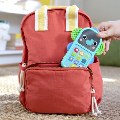 Zábava na telefonu s hudebním slůníkem Bright Starts Elephone™! Tento veselý sloníkový telefon je jako stvořený pro malé ručičky a přináší spoustu zábavy a interakce. Interaktivní klávesnice je plná známých ikonek aplikací a zvuků, díky čemuž se děťátko bude cítit jako máma nebo táta. Každým stisknutím tlačítka se aktivují světýlka a melodie. Rozkošná sloníkova tvářička má svítící líčka a zrcátko pro objevování sebe sama. Jeho ouška jsou texturována pro dodatečnou senzorickou hru a hmatovou stimulaci! Hračka obsahuje více než 20 zvuků a melodií a funguje na 2 AAA baterie (nejsou součástí balení). Díky lehkému a přenosnému designu je ideální pro zábavu na cestách. Jednoduše se vejde do většiny přebalovacích tašek a skvěle doplní sbírku hraček na kočárek. Vhodné pro děti od 6 měsíců. Výborný dárek na křtiny, narozeniny či Vánoce.