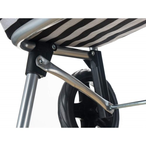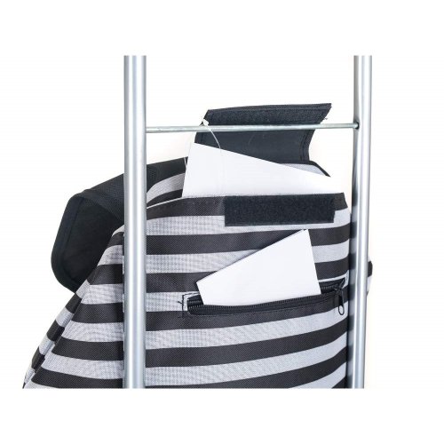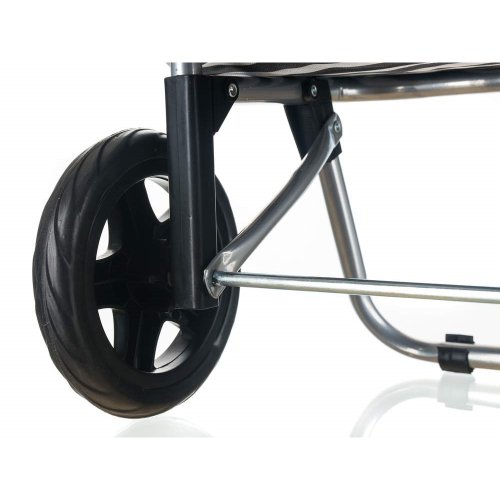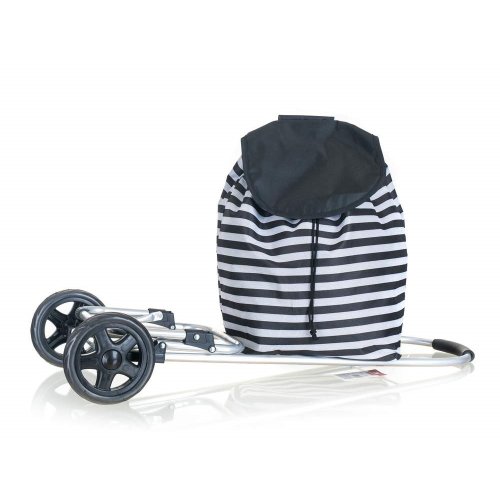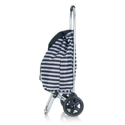 Nákupní taška na kolečkách je pomocníkem při těžších nákupech zejména pro starší občany a ženy. Objem tašky je 30 l a maximální nosnost 25 kg. Textilní taška je snadno odnímatelná z kovové konstrukce a je snadno omyvatelná. Taška na kolečkách má ergonomickou rukojeť a konstrukce tašky je zpevněná kovovou odkládací plochou, která stabilizuje celý výrobek. Plastová kolečka umožňují jednoduchý pohyb po jakémkoli povrchu.