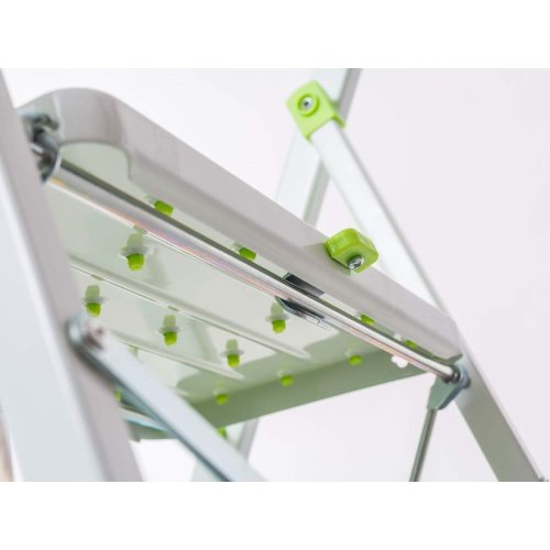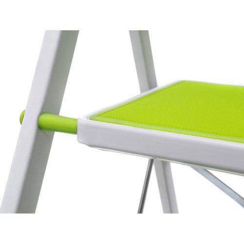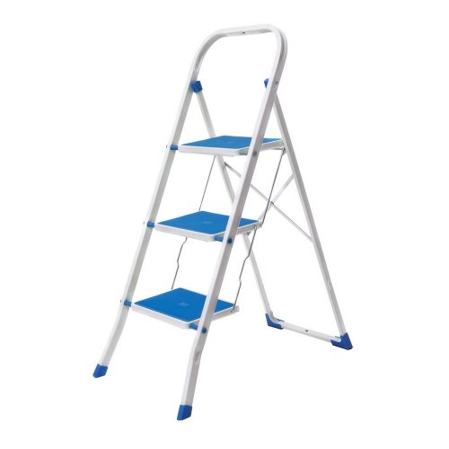 Jednostranné kovové 3 stupňové schůdky pro domácnost jsou určeny pro všestranné použití. Schůdky mají bezpečné protiskluzové nášlapy a nohy jsou opatřeny protiskluzovými koncovkami. Maximální nosnost je 150 kg. Nášlapný schůdek 30 x 20 cm. Výška horního schodu je 69 cm a celková výška 107 cm.