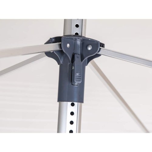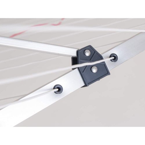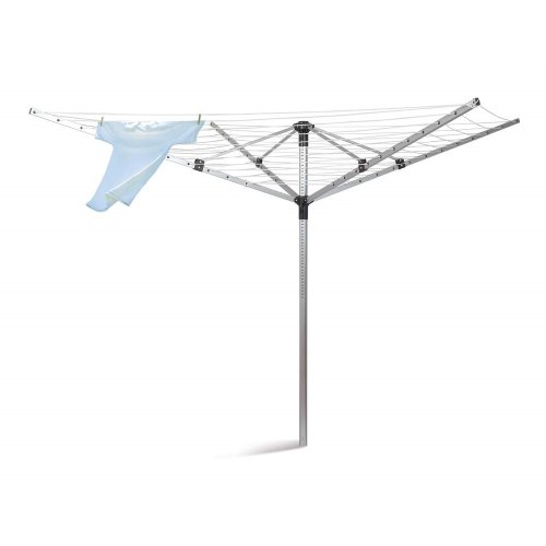 Venkovní sušák 60 m sušící plochy, 4ramenný, který jistě oceníte nejen v letních měsících, kdy můžete sušák umístit kdekoliv na vaší zahradu. Do země se upevňuje pomocí zemní objímky, která je součástí balení, dále je součástí spínací pásek pro fixaci ramen ve složené poloze, ochranný potah na zip a závěsný obal na kolíčky. Velká sušící plocha umožňuje pověšení prádla až z 5 pracích cyklů najednou. Rozměry sušáku: 190 x 190 x 187 cm.