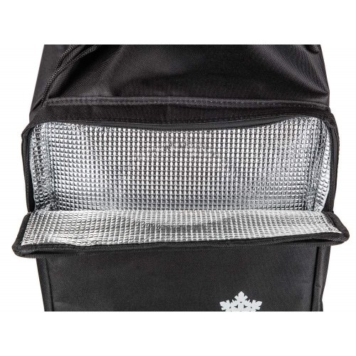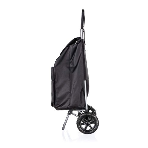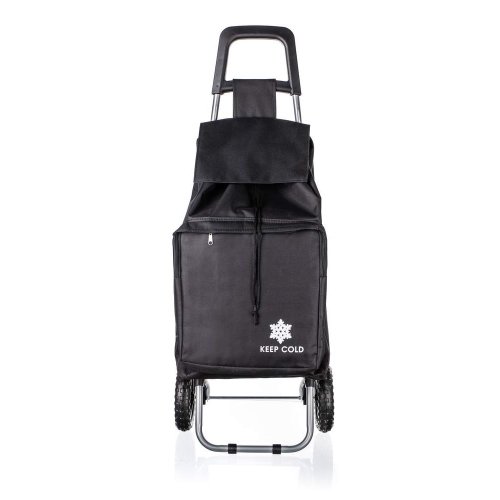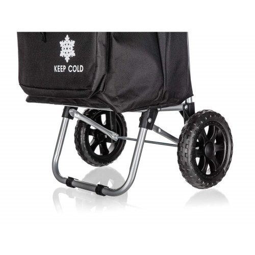 Nákupní taška na kolečkách je pomocníkem při těžších nákupech zejména pro starší občany a ženy. Objem tašky je 30 l a maximální nosnost 30 kg. Textilní taška je snadno odnímatelná z kovové konstrukce a snadná na údržbu. Taška na kolečkách má ergonomickou rukojeť a konstrukce tašky je zpevněná kovovou odkládací plochou, která stabilizuje celý výrobek. Plastová kolečka umožňují jednoduchý pohyb po jakémkoli povrchu. Součástí tašky je tepelně izolovaná kapsa pro delší uchování mražených nebo nebo teplých potravit.