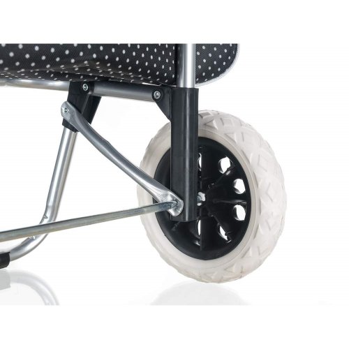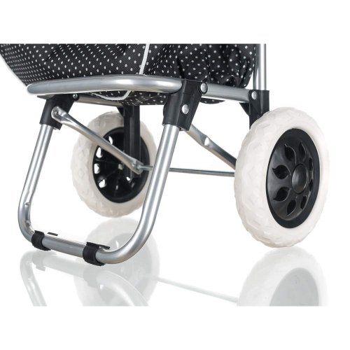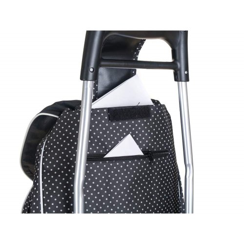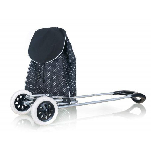 Nákupní taška na kolečkách je pomocníkem při těžších nákupech zejména pro starší občany a ženy. Objem tašky je 30 l a maximální nosnost 30 kg. Textilní taška je snadno odnímatelná z kovové konstrukce a je snadno omyvatelná. Taška na kolečkách má ergonomickou rukojeť a konstrukce tašky je zpevněná kovovou odkládací plochou, která stabilizuje celý výrobek. Plastová kolečka umožňují jednoduchý pohyb po jakémkoli povrchu.