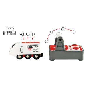 Převezměte řízení a jeďte bezpečně, máte v soupravě cestujícího! Jedinečný ovladač má snadno použitelné funkce couvání a zastavení, dvě různé rychlosti vpřed a vysílací frekvence A a B k zajištění provozu více dálkově ovládaných vláčků na stejné trati. Stisknutím tlačítek aktivujete světelné a zvukové efekty. Vláček lze ovládat i tlačítky na lokomotivě. Střecha vagónu je odklápěcí. Vláček je vybaven klasickými magnetickými spojkami BRIO a lze k němu připojit další vagóny. V soupravě mohou cestovat 1-2 pasažéři. Sada BRIO World je vyrobena ze dřeva s certifikátem FSC® a vysoce kvalitních plastů. Je vhodná pro děti od 3 let a je ideálním dárkem pro chlapce i dívky. Tato sada obsahuje: 1x lokomotivu, 1x cestovní vagón, 1x figurku. Baterie: 4 x AA, nejsou součástí balení. Baleno v krabičce. Rozměry vlakové soupravy: 4,5 x 17 x 4 cm. Rozměry balení: 15 x 29 x 11 cm. Věk: 3+