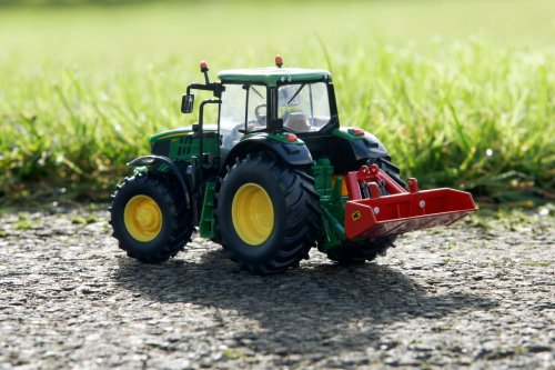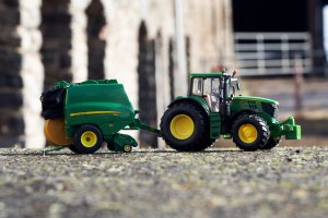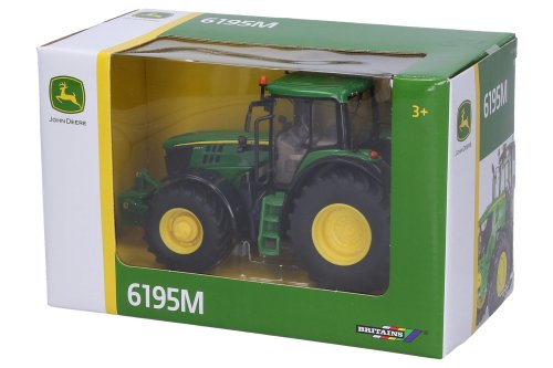 Britains model traktor JOHN DEERE 6195M. Měřítko 1:32. Velikost 19 cm. Vyrobeno z kovu s plastovými díly. Volná kola.