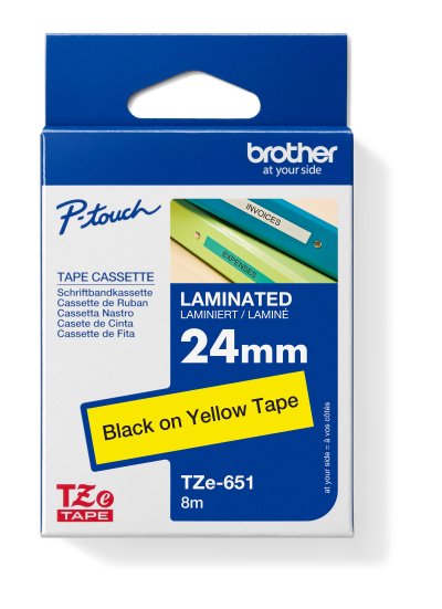 Originální kazeta s laminovanou páskou TZe-651 kompatibilní s širokou řadou tiskáren Brother P-touch je zvláště všestranná díky své snadno čitelné černé a žluté barvě - ideální pro domácnost, kancelář a další pracoviště.