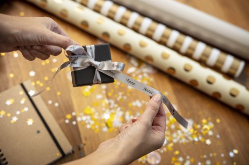 Tato textilní stuha bez lepící vrstvy s luxusním lesklým povrchem je ideální pro balení dárků a řemeslných výrobků.