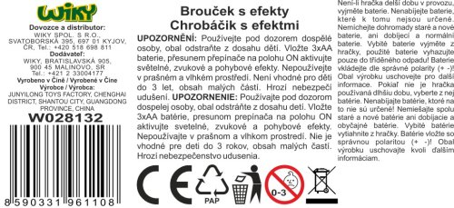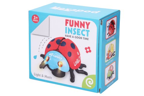 Brouček s efekty. Velikost 13,5 cm. Světelné a zvukové efekty, jízda. Aktivace ON/OFF přepínačem v zadní části brouka. 3 x AA baterie nejsou součástí. 3 varianty - modrá, zelená, žlutá.