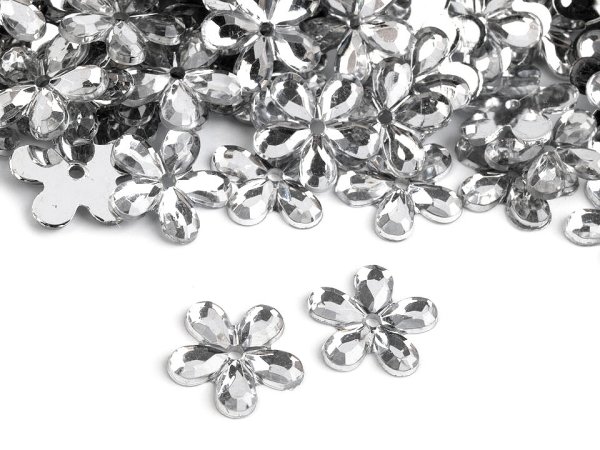 Broušené plastové květy využijete na ozdobení oděvů i různých textilních doplňků (tašek, šálů, čepic, rukavic). Jsou vhodné také na svatební dekorace, scrapbooking, zdobení polystyrenových polotovarů apod.
