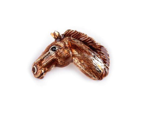 Elegantní kovová brož s koňskou hlavou je elegantní a detailně zpracovaný šperk, který zaujme všechny milovníky koní a jedinečných módních doplňků. Působí realisticky a vkusně, je perfektní kandidát na oživení jakéhokoliv outfitu. Oko má z broušeného kamínku, na povrchu brože je průsvitný hnědý smalt, krásně zvýrazňuje povrchovou strukturu, což dodává celé broži autentický a přitažlivý vzhled. Zapíná se pomocí brožového špendlíku. Brož můžete nosit nejen na oděvech, ale hodí se i k ozdobení klobouků, tašky či sepnutí šátku. Brož je na plastové kartě, kterou lze zavěsit na prodejní stojany.