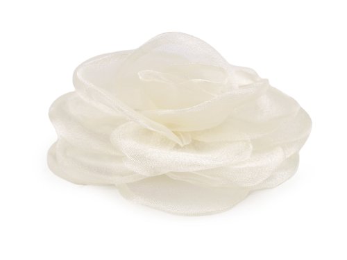 Organzová brož květu je elegantní, vzdušná a nadýchaná díky bohatým okvětním plátkům. Ve spodní části má spínací špendlík a klips, takže ji můžete připevnit jak na oděv, tak do vlasů. Květem si můžete ozdobit šaty, halenku, sako, klobouk i kabelku. Ve vlasech bude působit romanticky.