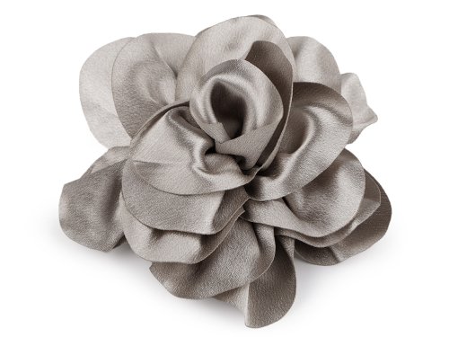 Saténová brož velkého květu má bohatý 3D tvar. Ve spodní části má spínací špendlík a klips, takže ji můžete připevnit jak na oděv, tak do vlasů. Květ využijete jako ozdobu na šaty, halenku, sako nebo kabelku. Ve vlasech bude působit romanticky.