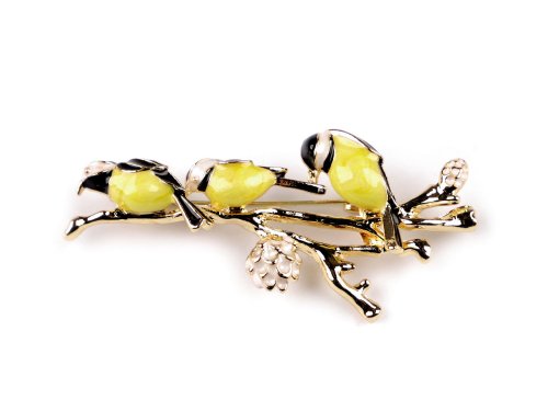 Kovová brož ptáčků na větvičce s perlou je velice elegantní, můžete ji využít na běžné nošení i na společenské události - návštěvy divadel, oslavy apod. Je ozdobená broušenými kamínky, díky kterým se nádherně třpytí. Z rubu má brož zavírací špendlík. Můžete ji nosit nejen na oděvech, hodí se i k ozdobení klobouků, tašky či sepnutí šátku. Brož je na plastové kartě, kterou lze zavěsit na prodejní stojany. [Brož č.2 nemá perlu ani broušené kamínky.]