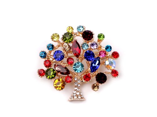 Elegantní kovová brož strom života je velice výrazná, upoutá na první pohled třpytivými broušenými kamínky. Doladí vaše šaty, sako, kostýmek, halenku, klobouk i tašku. Můžete ji využít jako spínací sponu na šálu nebo šátek. Ze zadní strany má spínací špendlík. Brož je na kartě, která se dá zavěsit na prodejní stojany.