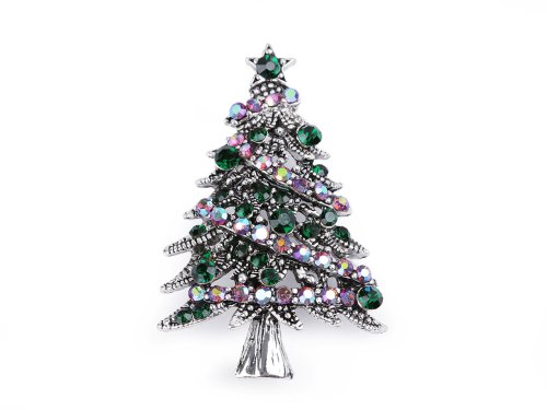 Elegantní brož vánočního stromečku bude zajímavým doplňkem vašeho oděvu. Díky třpytivým broušeným kamínkům skvěle dozdobí košile, saka, svetry, kabelky či čepice. Brož má vzadu brožový špendlík. Je na plastové kartě, která se dá zavěsit na prodejní stojany. Brož č.2 je navíc ozdobená lesklou perlou.