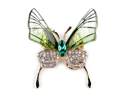 Brož s broušenými kamínky vážka, motýl - zelená sv. motýl