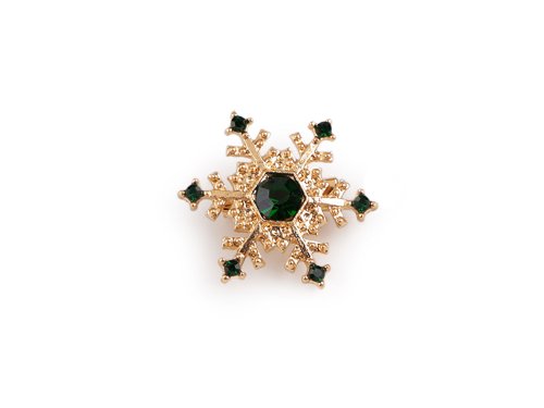 Brož s broušenými kamínky vločka - zelená tmavá