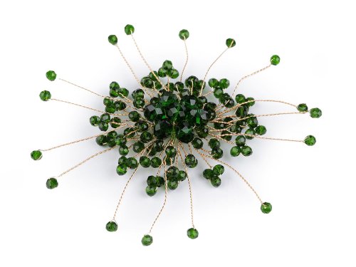 Elegantní brož s broušenými korálky je naprosto úchvatná. Navozuje dojem rozevlátého střapatého květu či sněhové vločky. Díky drátkům ji můžete libovolně tvarovat. Můžete ji nosit na oděvech, kloboucích, kabelkách či s ní můžete sepnout šátek. Na zadní straně má brožový špendlík.
