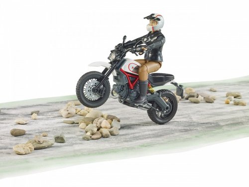 Každý se občas potřebuje odreagovat a jízda na nadupané mašině je správnou kombinací relaxu a adrenalinu. Pořiďte si k modelu Bruder 063051 s motorkou a figurkou další figurky BWORLD a zajímavé příslušenství Bruder a užijte si ještě více zábavy. Vyrobeno v Německu, z kvalitních materiálů. Hlavní vlastnosti: motorka Scrambler Ducatifigurka jezdce s pohyblivými kloubyvyrobeno v Německu