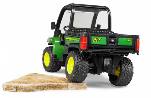 John Deere Gator XUV 855D je detailně propracovaný model čtyřkolky s výrazným designem značky John Deere. Přední a zadní okno je vyrobeno z průhledného nerozbitného polykarbonátu, nechybí zadní tažné zařízení, profilové pneumatiky a zadní sklopná korba. Přední nápravu je možné řídit pomocí volantu a na sedačku řidiče či spolujezdce lze usadit některého z panáčků ze série Bworld. Vyrobeno v Německu, z kvalitních materiálů. Hlavní vlastnosti: detailní modelkompatibilní s figurkami Bworldvyrobeno v Německu
