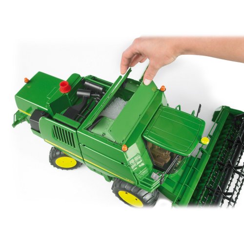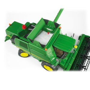 Tento kombajn Bruder má spoustu funkčních prvků jako například otevírací dvířka, výklopná zrcátka, otáčivé schody do kabiny kombajnu, otočnou žací lištu, zatáčecí zadní kola, výklopné horní a boční dekly, výklopné rameno. Šnek v rameni imituje sypání obilí. Materiál je vhodný pro hraní doma i venku. Vyrobeno v Německu. Hlavní vlastnosti: spousta funkčních prvkůvhodné ven i dovnitřvyrobeno v Německu