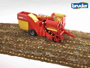 Kombajn na brambory je velký a detailně propracovaný model kombajnu. Nejdůležitější částí je přebírací pás, který se snadno ovládá pomocí ruční kličky. Z pásu jsou brambory transportovány přímo do zásobníku, který je možné dle přání nastavit. Stabilitu vozu zajišťuje sklápěcí opěrná noha, vynášecí pás je možné sklápět a kombajn má profilované pneumatiky. Lze ho připojit k libovolnému traktoru BRUDER série 20xx, 21xx a 30xx. V příslušenství nalezneme 80 ks brambor do stroje. Velikost brambor je cca 5-8 mm. Vyrobeno v Německu, z kvalitních materiálů. Hlavní vlastnosti: přebírací pás ovládaný ruční kličkousklopný páskompatibilní s traktory Bruder80 ks bramborvyrobeno v Německu