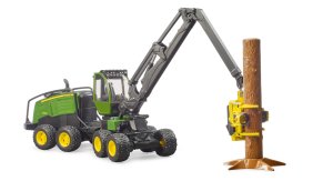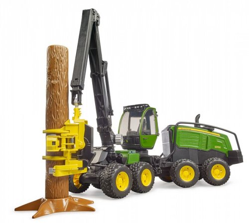 Lesní kombajny John Deere 1270G díky svým osmi kolům vynikají stabilitou a maximální průchodností terénem. Působivý model nabízí ohromující množství věrně zpracovaných detailů. Do kabiny se nastupuje po skládacích schůdcích a lze jí v celém rozsahu otáčet, samozřejmostí jsou otevíratelná dvířka a kompatibilita kabiny s figurkami BWORLD. Podvozek je vybaven čtveřicí kyvných náprav a na pneumatikách robustních kol je podrobně vyveden terénní vzorek. Propracované pohyblivé rameno s pilovou jednotkou je vybaveno funkčními kleštěmi s detaily posuvných válců. Součástí modelu je kmen stromu s podnožím, můžete si tak začít bezprostředně hrát. Vyráběno v Německu, z kvalitních materiálů. Hlavní vlastnosti:kombajn a kmen stromu s podnožímotočná kabina se skládacími schůdky a otevíratelnými dvířkypohyblivé rameno s funkčními kleštěmi pilové jednotkykyvné nápravykompatibilní s figurkami BWORLDvyrobeno v Německu