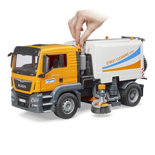 Každé místo je hezčí, pokud je uklizené. S úklidem vašeho Bruder města vám pomůže tento Bruder zametací vůz MAN TGS. Ukliďte silnice vašeho města, s tímto pomocníkem to bude hračka. Jako všechny modely Bruder je i model 3780 vybaven spoustou funkčních prvků. Dva otočné a výškově nastavitelné kartáče zvládnou úklid bez problémů a pomůže také dlouhý kartáč, který se pohybuje, když vozidlo jede. Nečistot vaše město zbavíte také díky pružnému sacímu potrubí v zadní části vozu MAN TGS Bruder 3780. Nasbíraný nepořádek vysypete snadno zvednutím výklopného kontejneru, následně se otevře zadní víko a nepořádek se vysype na určené místo. Samozřejmostí jsou sklopná zrcátka a otevírací dveře kabiny auta Bruder MAN TGS. Vyrobeno v Německu, z kvalitních materiálů. Hlavní vlastnosti: spousta funkčních prvkůdva otočné a výškově nastavitelné kartáče výklopný kontejnersklopná zrcátkaotevírací dveře kabinyvyrobeno v Německu Ocenění hračky: Top 10 Spielzeug 2020Plus X Award 2020