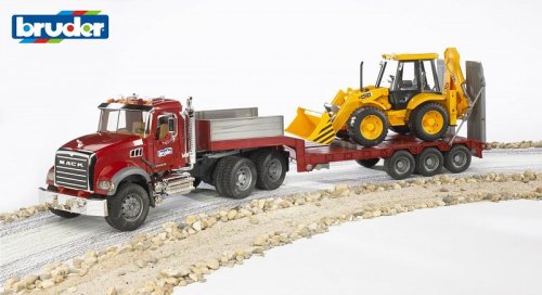 Bruder MACK tahač s nakladačem JCB 4CX je nádherným modelem amerického vozu. Mohutná souprava tahače MACK a návěsu se známým nakladačem BRUDER JCB. Tahač disponuje výklopným motorovým prostorem a otevíráním dveří. Celá souprava je osazena měkkými pneumatikami. Vyrobeno v Německu, z kvalitních materiálů. Hlavní vlastnosti: tahač s nakladačemvýklopný motorový prostor a otevírání dveřívyrobeno v Německu