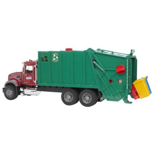 Bruder Nákladní auto MACK Granit popelář zelený MACK Granite je model amerického nákladního auta propracovaného do nejmenších detailů. Okna kabiny jsou vyrobeny z průhledného vysoce kvalitního polykarbonátu. Dveře kabiny lze otevřít, vyklápěcí kapota umožňuje pohled do motoru, vůz má sklápěcí zpětná zrcátka a profilované pneumatiky. Popelnice se vyprazdňují pomocí plně funkčního výtahu, lis na odpadky je stejně jako v reálném voze také plně funkční. Lis přepravuje odpadky do zadní části vozu a po naplnění auta může být zadní část otevřena a auto vyprázdněno. Vyrobeno v Německu, z kvalitních materiálů. Hlavní vlastnosti: detailní modelotevíratelné dveře kabiny, vyklápěcí kapota, sklápěcí zpětná zrcátkaplně funkční výtah i lis na odpadkysoučástí balení jsou 2 popelnicevyrobeno v Německu