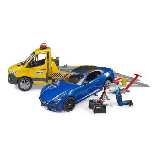 Propracovaný model oblíbeného užitkového vozu Mercedes-Benz Sprinter v úpravě odtahové služby je vybaven bateriově napájeným majákem se světelnými a zvukovými efekty (baterie jsou součástí balení). Je opatřen rampou s výsuvnými ližinami a zakládacími klíny, ale i dalšími funkčními detaily, otevíratelnými dveřmi, skříňkami na bocích vozu, či odnímatelnou konzolou pro naviják. Jeho součástí je i náklad v podobě realistického modelu sportovního kabrioletu, který má odnímatelnou střechu a vyměnitelná kola. Interiér obou aut je samozřejmě plně připravený k usazení rozmanitých figurek BWORLD. V naší nabídce lze nalézt také další příhodná rozšíření a příslušenství charakterem odpovídající modelu. Vyrobeno v Německu, z kvalitních materiálů. Hlavní vlastnosti: maják se světelnými a zvukovými efekty (3×LR44 baterie jsou součástí balení)sportovní auto s odnímatelnou střechou a vyměnitelnými kolyrampa s výsuvnými ližinami a zakládacími klínyotevíratelné dveřeotevíratelné skříňkyodnímatelná konzola navijákukompatibilita s BWORLD příslušenstvímvyrobeno v Německu