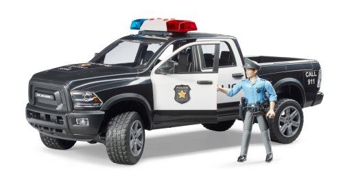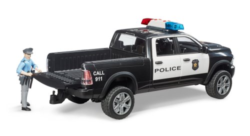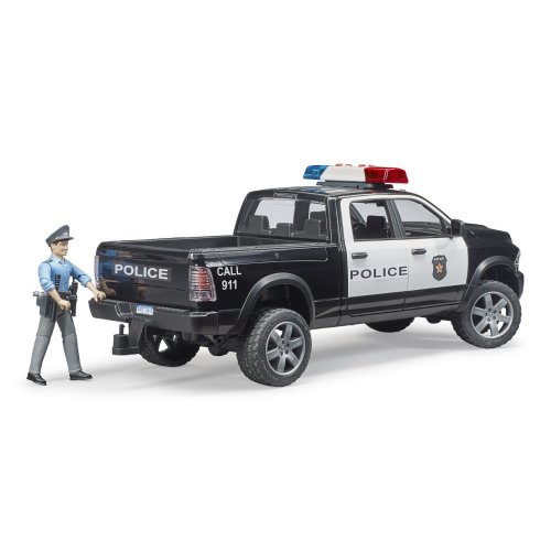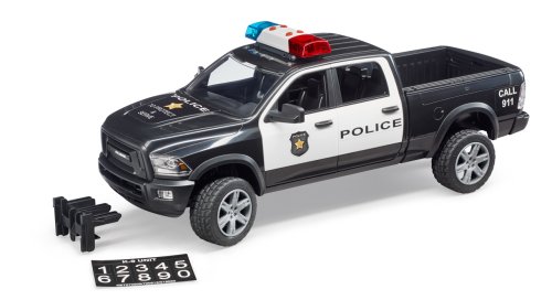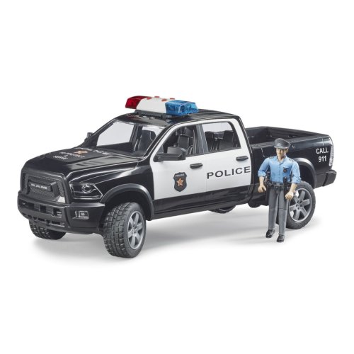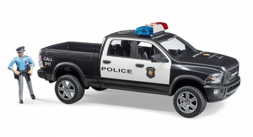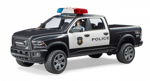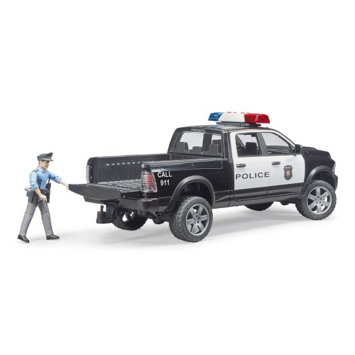 Bezpečnost Bruder světa zajišťují policisté na koních, v autech nebo psovodi. Nyní je k dispozici posila v podobě policejního terénního auta RAM s policistou. Policejní Pick-up s pohonem 4 x 4 se hodí do každého terénu, včetně méně přístupných lesů nebo horských oblastí. Terénní auto v barvách policie má světelný a zvukový maják, otevírací dveře a zadní čelo, nechybí ani zadní tažné zařízení a řiditelná přední náprava. Policejní auto RAM Bruder je možné řídit prodlouženým volantem, který je součástí balení. Místo za volantem je přizpůsobeno figurkám Bruder BWORLD. Figurka policisty s policejní čepicí má pohyblivé končetiny, je vybaven opaskem s nezbytnostmi jako je obušek, pistole, pouta a nechybí ani vysílačka. Balení modelu Bruder obsahuje: Policejní terénní auto RAM s majákem a figurku policisty s příslušenstvím. Hlavní vlastnosti: světelný a zvukový majákotevírací dveře a zadní čelozadní tažné zařízení a řiditelná přední nápravaprodloužený volant k řízení předních kol