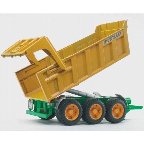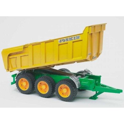 Přívěs JOSKIN je třínápravový vůz, který se pyšní belgickou značkou JOSKIN. Patří k největším a nejmohutnějším návěsům ve své řadě. Je vybaven sklápěcí opěrnou nohou, má vysokosklopnou a polohovatelnou vanovou korbu, která se ovládá pomocí teleskopického ramene. V průběhu sklápění se automaticky otevřou zadní vrata, která jdou zablokovat v jakékoli pozici. Lze připojit ke všem traktorům série 20xx, 21xx, 30xx a k unimogům. Vyrobeno v Německu, z kvalitních materiálů.Hlavní vlastnosti: třínápravový vůzsklápěcí opěrná nohapolohovatelná korbateleskopické ramenokompatibilní s Bruder unimogy a traktory série 20xx, 21xx, 30xxvyrobeno v Německu