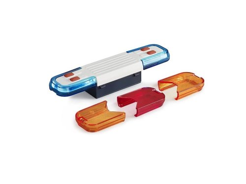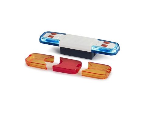 Moderní světelný a zvukový modul vyniká špičkovým designem a rozšiřuje funkce všech nákladních vozů BRUDER. Čtyři různá funkční tlačítka umožňují přehrávání zvuků motoru, policejní sirény, hasičské sirény a výstražného signálu po dobu přibližně 20 sekund. Krátký výstražný signál je obzvlášť vhodný pro použití v hustém provozu a na křižovatkách, kde přitahuje větší pozornost při zapnutém výstražném světle a zvuku záchranných vozidel. Světelná funkce se spouští současně s odpovídajícím zvukem. Modul umožňuje nasazení dvou modrých krytů (např. pro policii), dvou oranžových krytů (např. pro servisní vozidla) a jednoho červeného krytu (např. pro záchranné služby v USA) v libovolné kombinaci. Díky standardizovanému BRUDER konektoru je tento modul velmi univerzální. Součástí balení je také adaptér, který umožňuje použití modulu i na nákladních vozech s otvorem ve střeše. Hlavní vlastnosti: automatické vypnutí po cca 30 sekundáchrychlé vypnutí opětovných stiskem tlačítka4 zvuky – motor, policejní siréna, výstražný policejní signál, hasičská sirénasvětelná funkcenapájení 2x AAA baterie (jsou součástí balení)vyrobeno v Německu