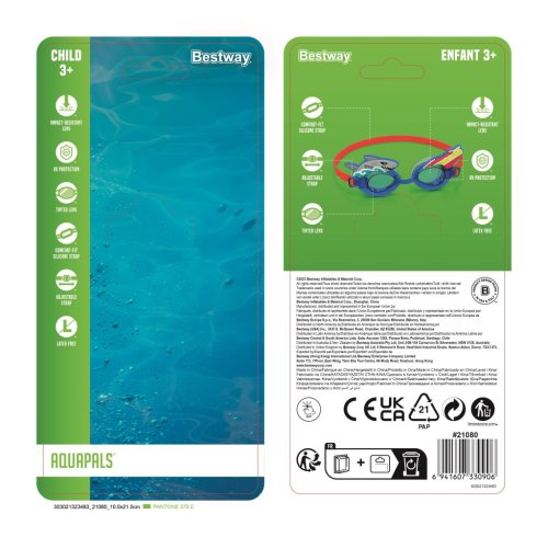 Moderní plavecké brýle ve veselém designu s bezpečnostními čočkami. Pohodlné tvarované košíčky na oči pro dokonalou těsnost. Upravitelný pásek pro bezpečné a pohodlné nošení. 3 různá barevná provedení. Pro děti od 3 let.