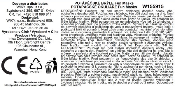 Seznam varování týkajících se bezpečnosti potápěčských masek vychází z požadavků nařízení (EU) 2023/988 o obecné bezpečnosti výrobků (GPSR):