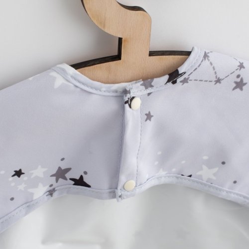 Dětský bryndák-zástěra s dlouhým rukávem New Baby účinně ochrání oblečení vašeho dítěte před ušpiněním při jídle a hraní. Vyrobeno z lehkého a měkkého materiálu. Bryndáček má pohodlné zapínání na 2 cvočky a praktickou kapsu. Bryndák je ušitý ze dvou vrstev materiálů. Spodní vrstva je z nepromokavého materiálu. Při zašpinění lze bryndák otřít vlhkým hadříkem, nebo prát v pračce.<BR>Zástěru díky dlouhému rukávu lze využít i na malování.<BR>Charakteristika<BR>- pohodlné zapínání na cvočky<BR>- měkká kapsa<BR>- vyrobeno z měkkého, lehkého materiálu<BR>-chrání oblečení před ušpiněním během jídla a hry dítěte<BR>- módní vzory a atraktivní barvy<BR>Technická data:<BR>- materiál: 100% polyester<BR>- rozměry: 45 x 36 cm <BR>- rozměr rukávů od krčku: 43 cm