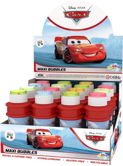 Bublifuk s motivem Aut (Cars) o obsahu 175 ml. Součástí barevného víčka je hra a foukátko. Lze zakoupit i jako celý display, kde je 16 ks.