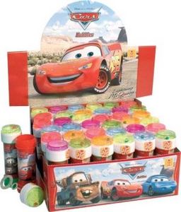 Bublifuk s motivem Aut (Cars) o obsahu 60 ml. Součástí barevného víčka je hra a foukátko. Lze zakoupit i jako celý display, kde je 36 ks.