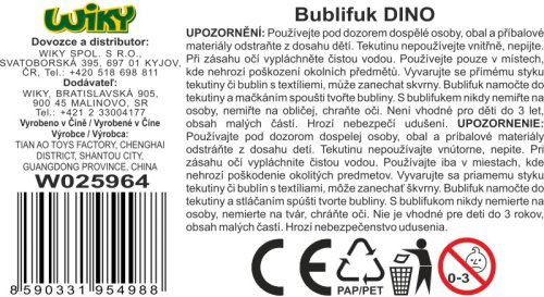 Bublifuk dino. Velikost 12 cm. 4 varianty - modrá, zelená, žlutá, růžová.